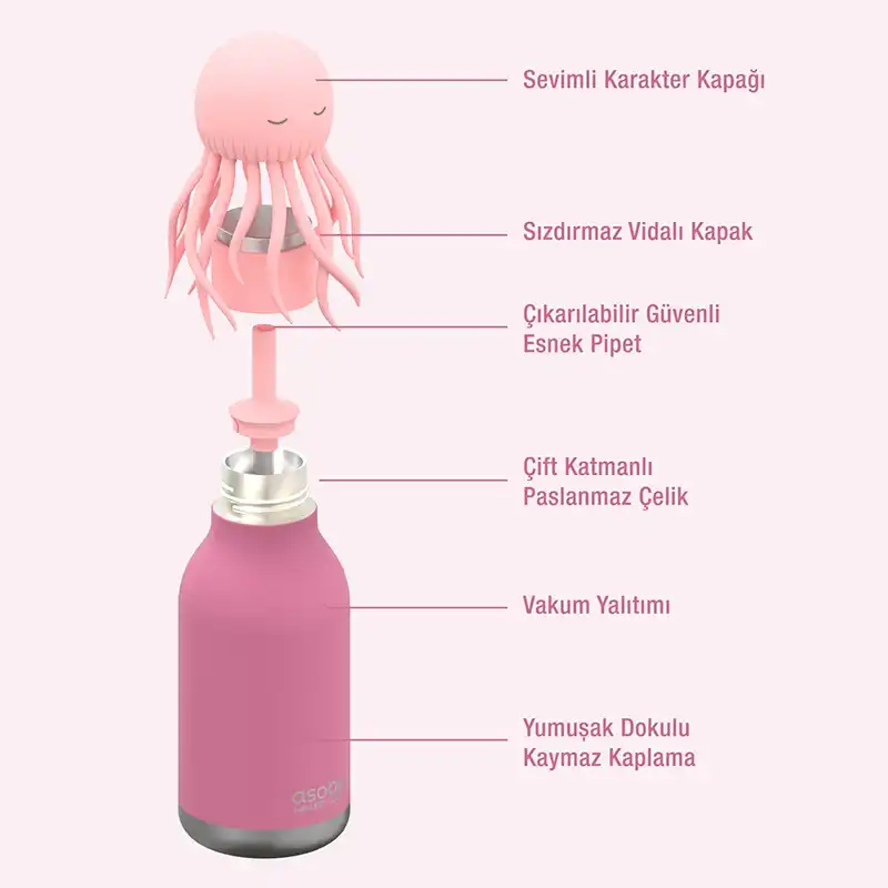 Yeni Bestie’nizle tanışın! Bu sevimli su şişeleri, gün boyu susuz kalmamanıza yardımcı olur ve her yudumu daha eğlenceli hale getiren, çıkarılabilir ve koleksiyonluk silikon karakter başlığıyla birlikte gelir. Gelişmiş çift katmanlı vakum yalıtımı sayesinde içeceklerinizi 24 saate kadar soğuk tutar — gününüz ne getirirse getirsin mükemmel bir eşlikçidir.