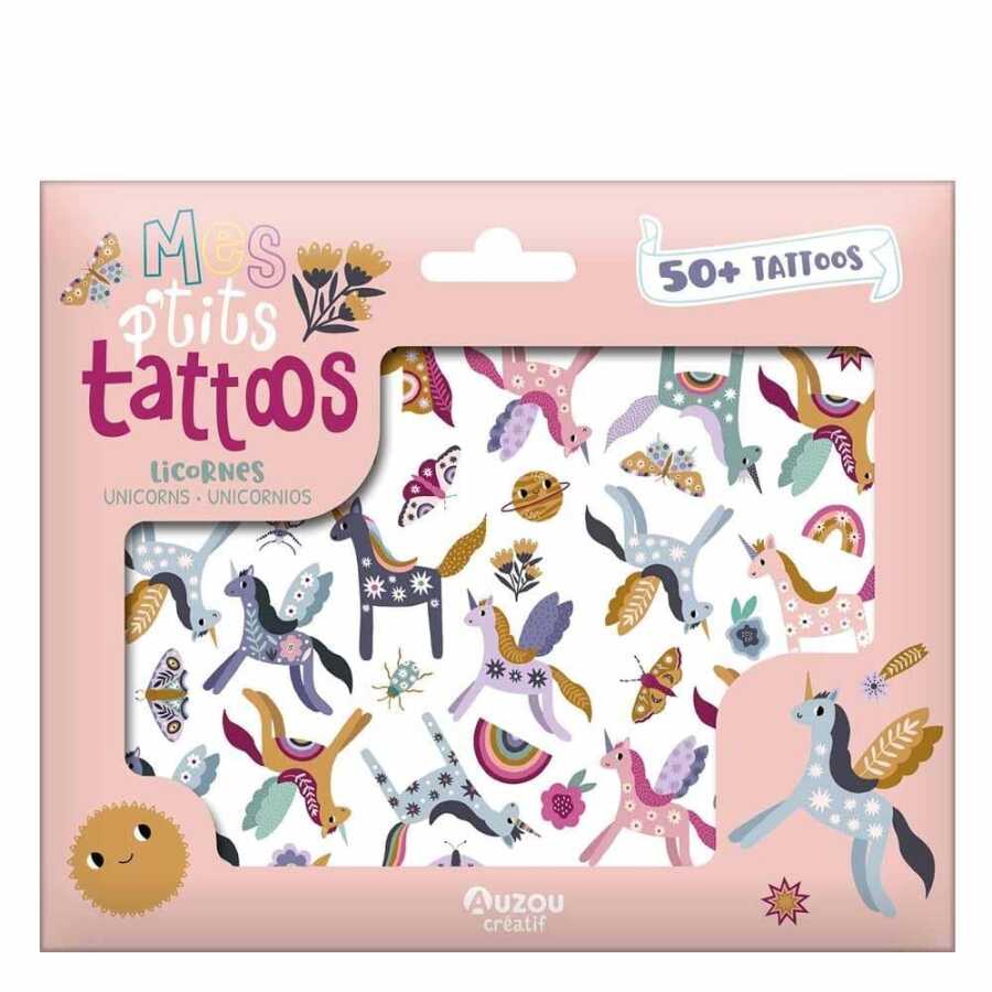 Auzou Toys’un unicorn temalı geçici dövme seti, 50’den fazla parıltılı dövme içerir.