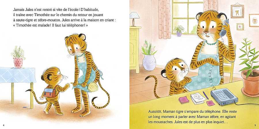 Küçük kaplan Jules için üzücü bir haber var: Arkadaşı zebra Timothée hastalanmış ve artık okula gelemiyor… Artık birlikte oynayacak ve şakalar yapacak kimse yok.