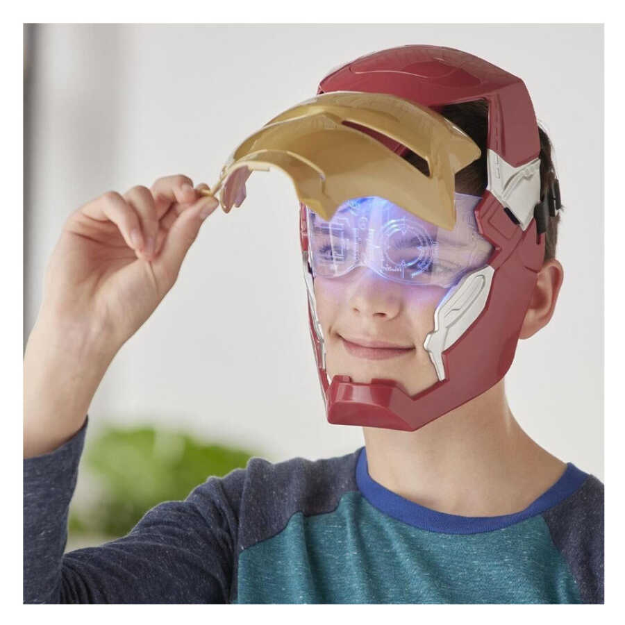 The wearer can choose to flip up the mask and deliver a witty one-liner or lower it to focus on combat moves like Iron Man's signature repulsor blast.
