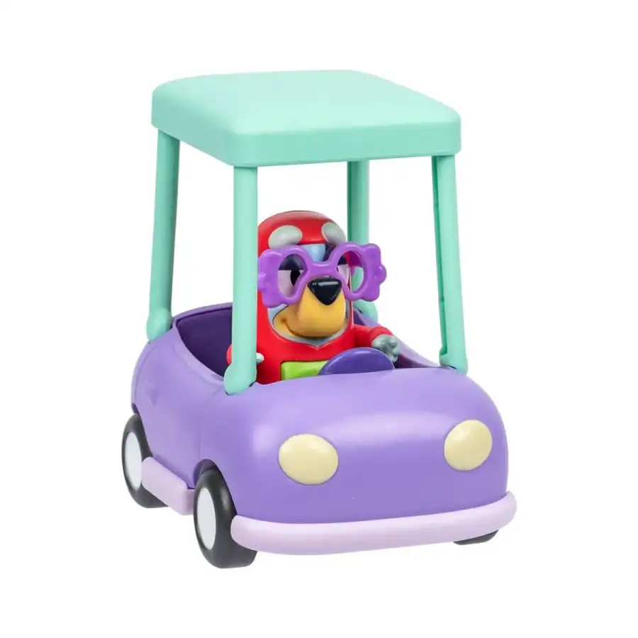 Bluey ve Arkadaşlarıyla Yola Çıkın! Yeni Bluey araçlarıyla macera başlıyor! Bluey Büyükannenin Arabası ile Janet’in yanında yolculuğa çıkın. Bu araç, 6 cm Bluey figürü ile birlikte gelir.