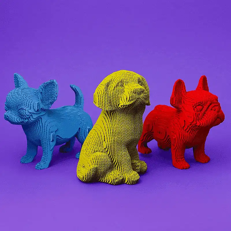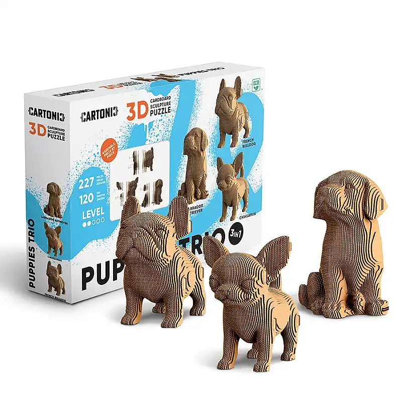 Assembled Puzzle Dimensions: Chihuahua: 13x10x14 cm, Bulldog: 13x7x13 cm, Labrador: 15x10x10 cm