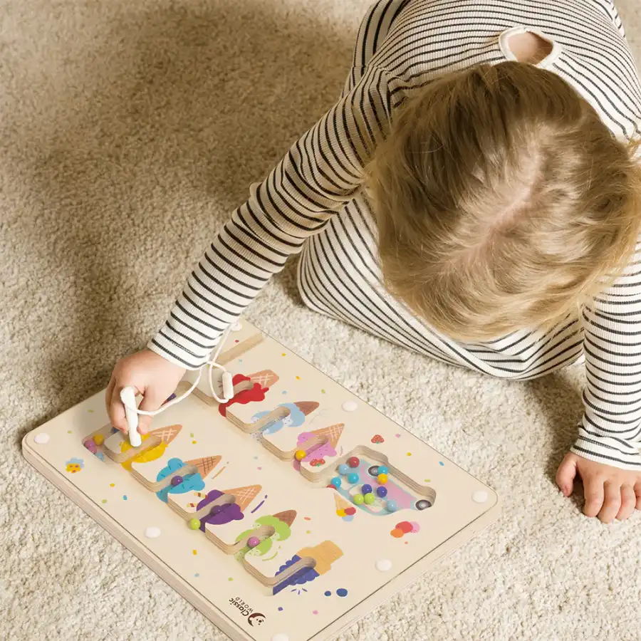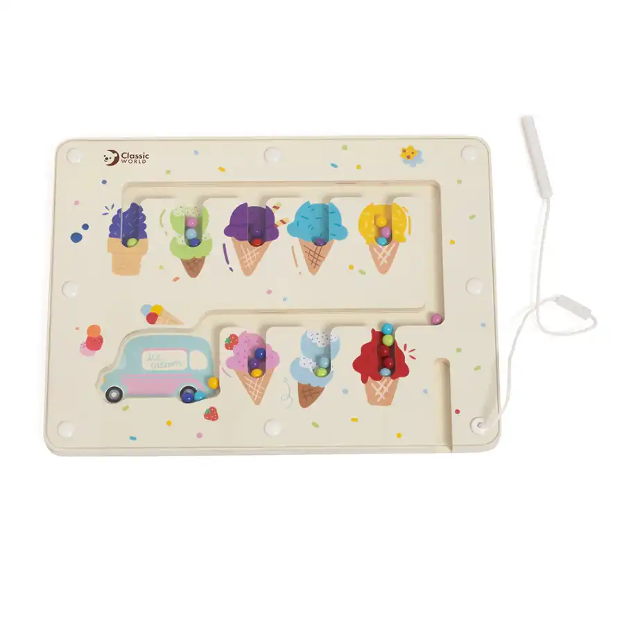 Classic World Ahşap Renk Eşleştirme Oyunu’nda, çocuklar oyun tahtasına bağlı manyetik kalem ile renkli minik dondurma toplarını, aynı renge karşılık gelen dondurma külahına yerleştirecekler. Oyun, çocukların renk farkındalığını artırmak ve ince motor becerileri geliştirmek için mükemmeldir.