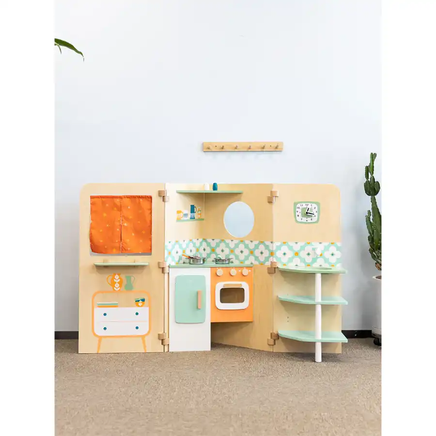 Bir evi temiz ve düzenli tutmak zor olabilir, ancak Classic World Benim Küçük Evim, çocuklara küçük yaşlardan itibaren eşyalarına nasıl özen göstereceğini öğretirken, arkadaşlarıyla kendi rol oyunlarını yaratmalarına ve hayal güçlerini tamamen farklı bir seviyeye taşımalarına olanak tanıyor. Katlandığında çok kompakt, açıldığında ise büyük bir alana yayılarak çocuklara pek çok fırsat sunuyor. Çocuklar, farklı alanlarda oyun oynayarak odadan odaya geçebilirler: Bir mutfak, ocak, fırın, buzdolabı ve mutfak gereçleri, bir çamaşır odası ve dönen bir çamaşır makinesi, bir dış mekan resim masası, bir yatak odası ve aynalı bir alan, ayrıca bir kukla tiyatrosu da bulunuyor.