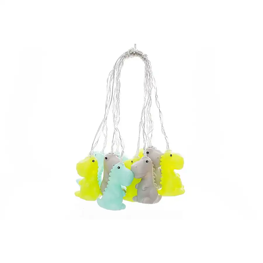 Dhink Dino String Gece Lambası 2 m Çok Renkli, sevimli dinozor figürleriyle süslenmiş, renkli LED ışıklarıyla çocuk odalarına neşeli bir atmosfer katan dekoratif bir gece lambasıdır. 2 metrelik uzunluktaki lamba, üzerinde sevimli dinozor figürleri barındırarak çocuk odasına eğlenceli bir hava katar. Farklı renklerdeki LED ışıklarıyla odaya canlılık ve renklilik katar. Sevimli dinozor figürleri, lambayı sadece aydınlatan bir üründen öteye taşıyarak odanın dekorasyonuna eğlenceli bir dokunuş katar. 2 metre uzunluğundaki aydınlatma, odanın istenilen köşesine kolayca yerleştirilebilir ve esnek bir kullanım sunar. Çocukların odalarında huzurlu ve eğlenceli bir atmosfer yaratmak için ideal bir seçenektir. Çocukların geceleyin daha rahat uyumasına yardımcı olmak için loş bir ışık kaynağı olarak kullanılabilir. Odanın genel dekorasyonunu tamamlamak ve eğlenceli bir tema oluşturmak için diğer dinozor temalı dekoratif objelerle birlikte güzel bir görünüm yakalamanızı sağlar. Çocuk odasına hoş bir ambiyans katmak ve odayı renklendirmek için mükemmel bir tercihtir.
