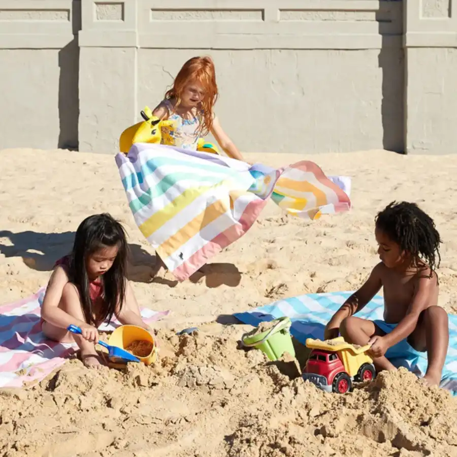 Havlunun kurumasını bekleyecek vaktiniz yok mu? Unicorn Waves, %83 Polyester ve %17 Poliamidden üretilmiş, pamuktan 3 kat daha hızlı kuruyan, çocuklara özel plaj havluları sunuyor. %100 geri dönüştürülmüş plastik şişelerden yapılan çevreci malzemesi ve B Corp sertifikalı kalitesiyle fark yaratıyor. Orta boy (51x27 inç) ölçüsündeki, hafif ve kompakt tasarımı sayesinde, küçük maceracılar için ideal olan bu havlu, benzersiz ilmeksiz kumaşı ile kum sıçramalarını engeller ve üstün emiciliğiyle çocuklarınızı hızla kurutur. Unicorn Waves ile eğlenceli, pratik ve çevreci bir plaj deneyimi yaşayın!