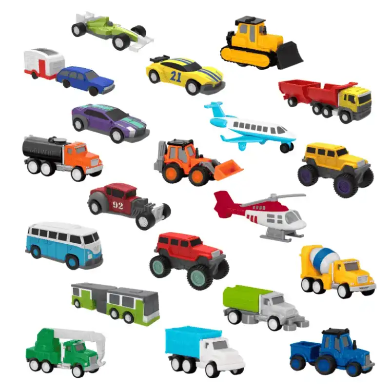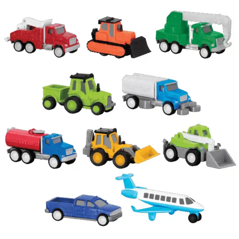 Bu oyun seti, hayal gücünü harekete geçiren oyunlar için 20 gerçekçi oyuncak araç içeriyor.