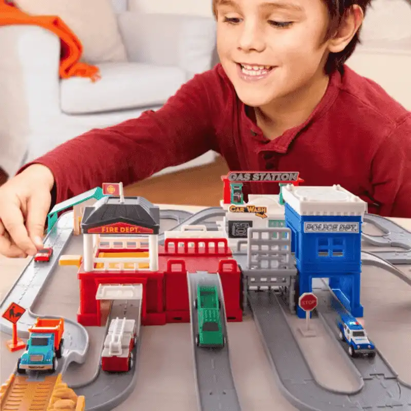 Onları sürün ve işlevsel bir asansöre sahip bir itfaiye istasyonunu, araba yıkama yeri olan bir benzin istasyonunu ve daha birçok şehir temalı aksesuarı keşfedin.