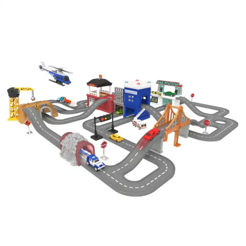 Oyuncak Araba Oyun Seti: Çocuklar için minyatür şehir oyun seti.