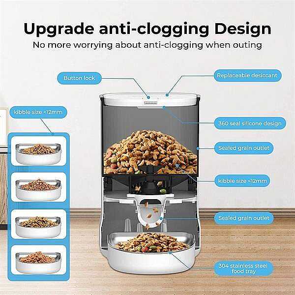 Notify me when its in stock4 Liter Capacity: Its large hopper can hold enough dry food for several days or weeks, depending on your pet's consumption rate. Its translucent design allows you to easily monitor the food level.
