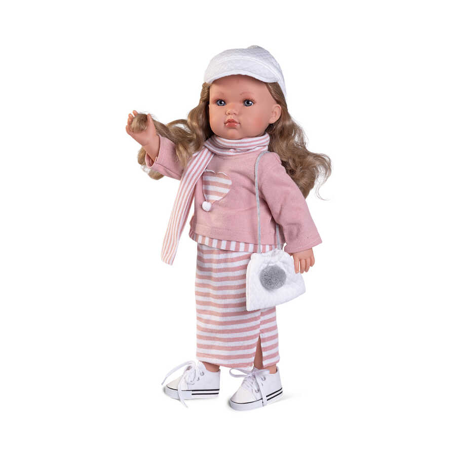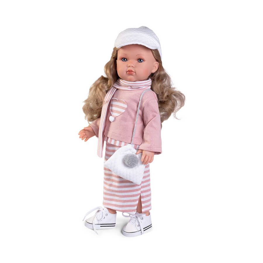 Offering a classic yet modern look with her elegant striped dress, Bella Vestido de Rayitas Doll stands out with her sporty elegance and stylish stance.