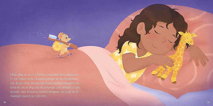 A child has lost a tooth! Hop, hop… Grisette puts on her magic shoes and comes to Amélia’s house. But the little girl isn’t in her room; she’s in the bathroom and is upset because a tooth has fallen out. If this is going to happen, Amélia won’t brush her teeth anymore!
