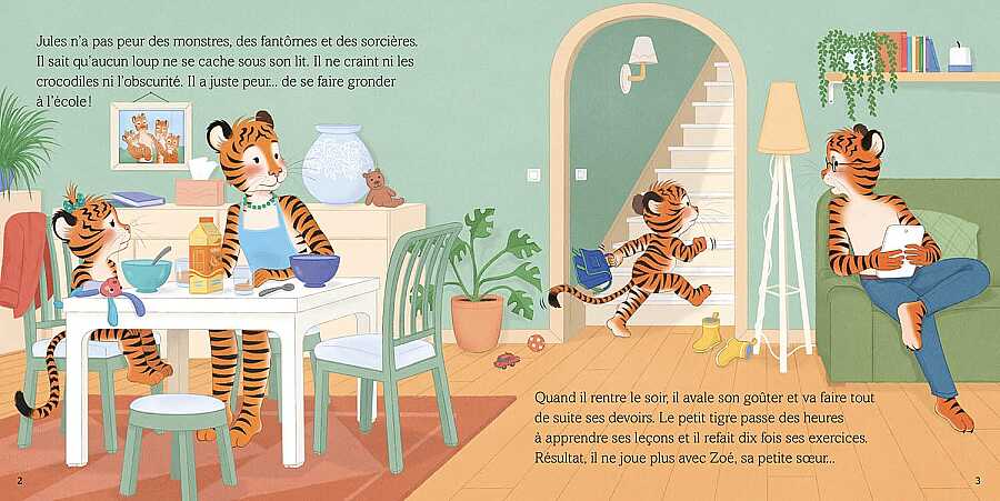 Jules packs his bag again and again, memorizes his poem until the last minute, but forgets everything because of stress. He feels like a clumsy tiger. But his friend Timothée and his teacher Mr. Graou calm him down.