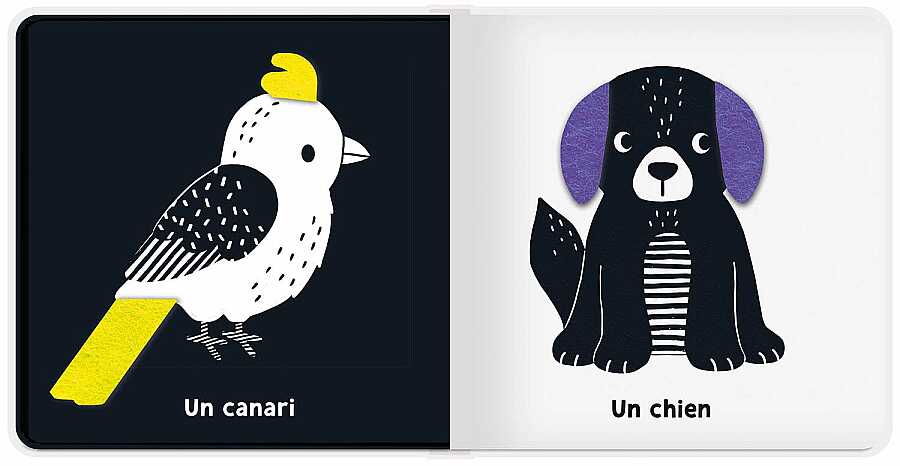 Your baby will discover the world of pets thanks to a picture book prepared with black and white visuals that are important for their development.