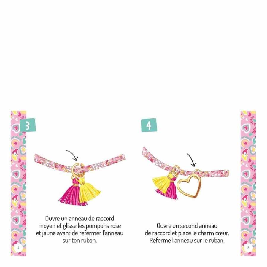 or a great idea for back-to-school separation! 2 Liberty-patterned ribbons, 4 pom-poms, 2 heart-shaped charms, and a Liberty-patterned pouch to store the bracelets.