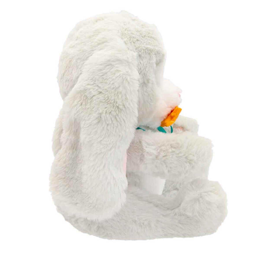 It's so much fun to take him out of his blanket, touch his soft fur, and cuddle him! This 20cm bunny is so excited and happy to meet you.