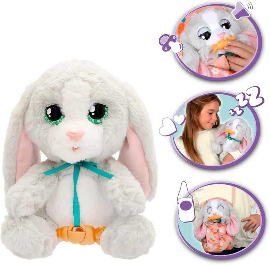 If you can't wait to meet him too, don't wait any longer! This bunny loves eating carrots and has a carrot-shaped pacifier! He gets tired after too much play and wants to sleep.