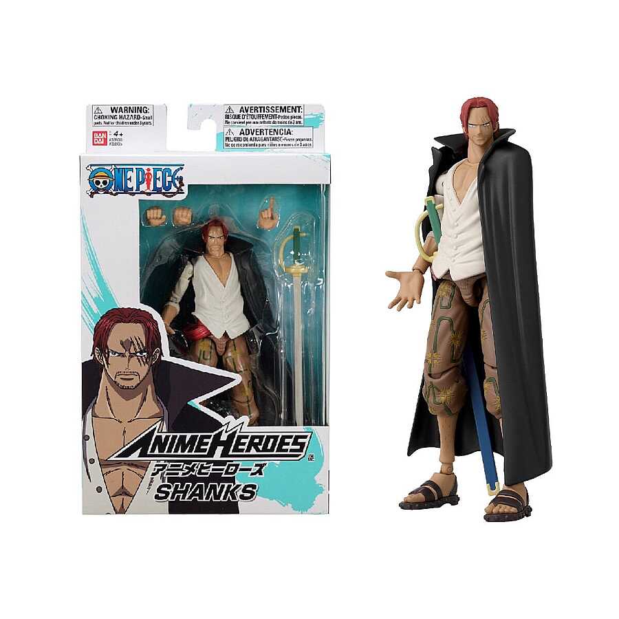 We're setting sail with the Straw Hat Pirates! Collect your favorite One Piece characters with these poseable 16 cm tall action figures. With designs faithful to the original artwork and high-quality detail, these figures will be a great addition to your collection. Plus, each pack includes interchangeable hands and/or character-specific accessories. Thanks to 16 articulated points, you can pose your figure in different ways and easily recreate any moment. He is the captain of the Red Hair Pirates and one of the Four Emperors who rule the New World. He started as an apprentice and was a member of the Roger Pirates, the only group to successfully conquer the Grand Line, but now he continues his life as a fully-fledged pirate. Shanks is also the one who gave Luffy his iconic straw hat and inspired him.
