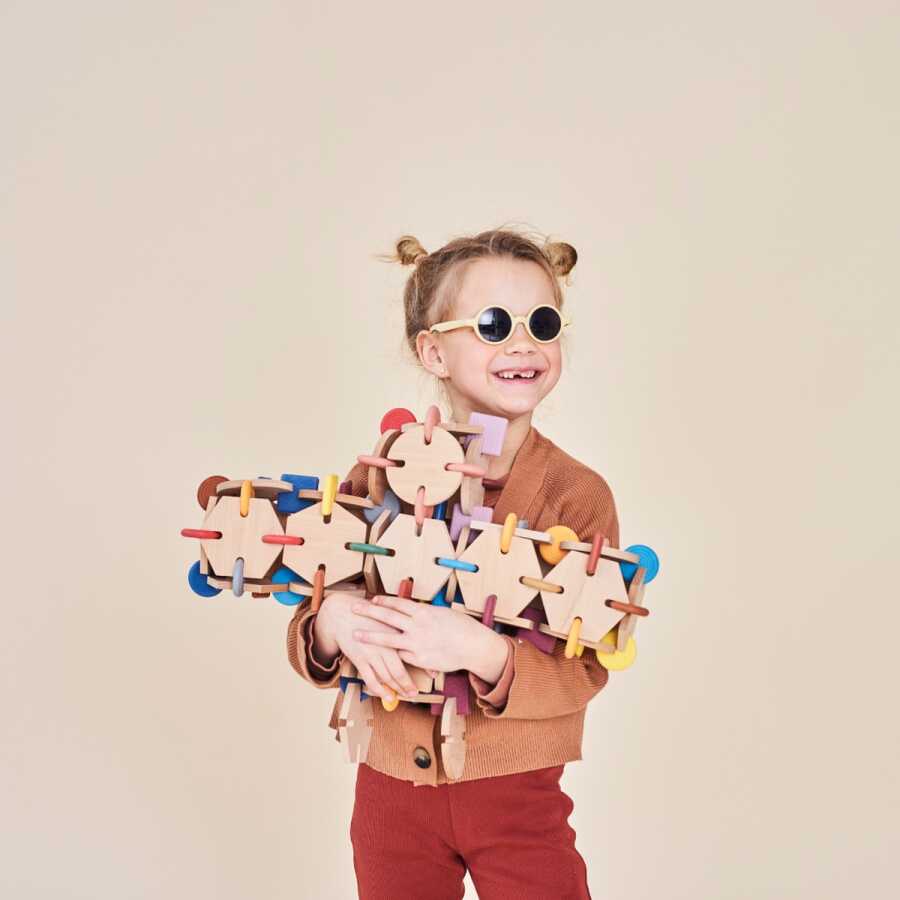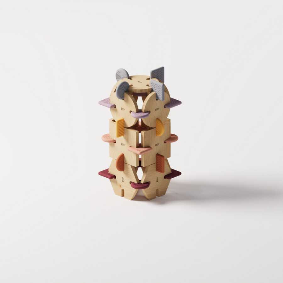 Produced with natural wooden blocks and colorful silicone connectors, BAVVIC offers children an open-ended, safe and sustainable play experience.