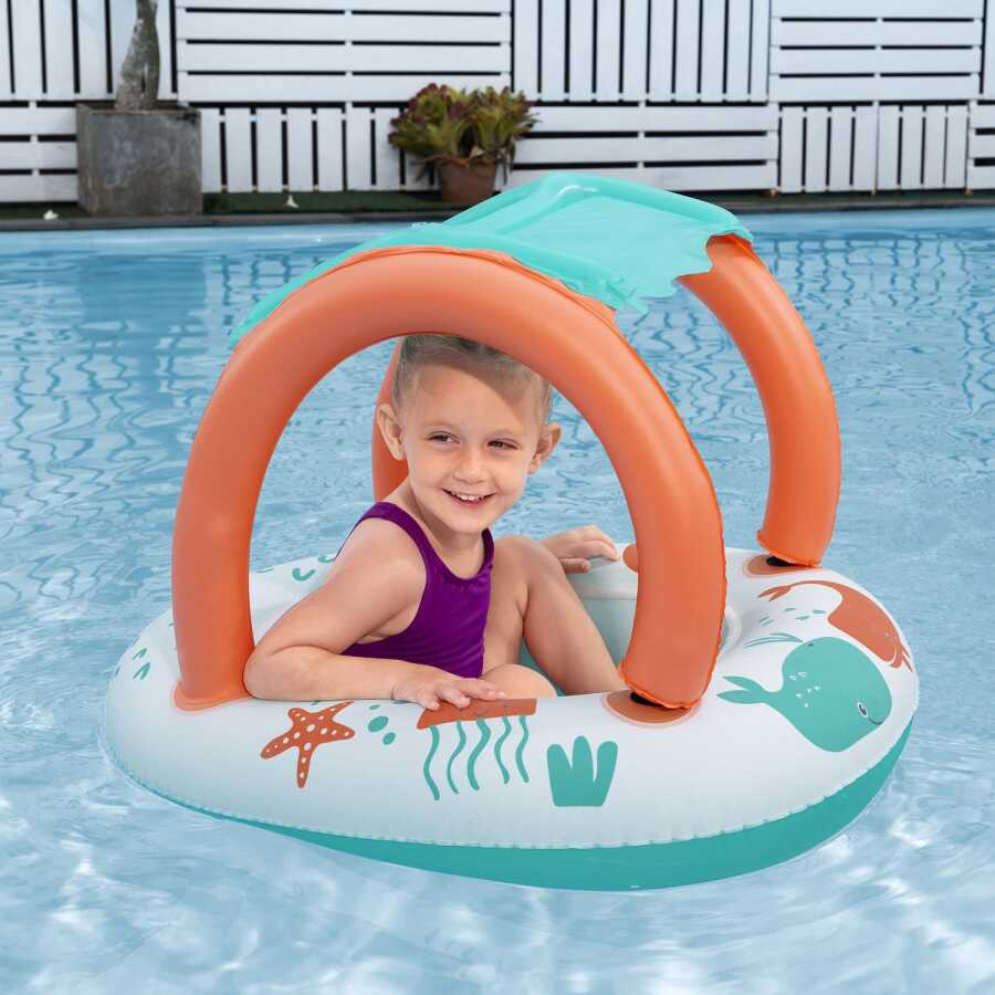 The Bestway Comfort Plush Shaded BW34203 includes a sun protection canopy equipped with UV Careful™ technology.