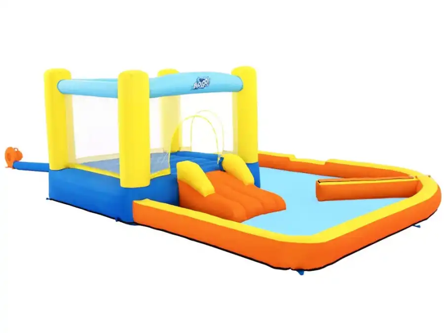 Bestway Trampoline and Slide Water Park Fun Pool 53381 Made of durable and colorful PVC-coated polyester material Double-stitched for added durability Bouncer features mesh walls for safe play and parental visibility Heavy-duty blower inflates the water park in less than 2 minutes Sprinkler creates a wall of water to pass through Designed for outdoor use Product Dimensions: 365 x 340 x 152 cm.
