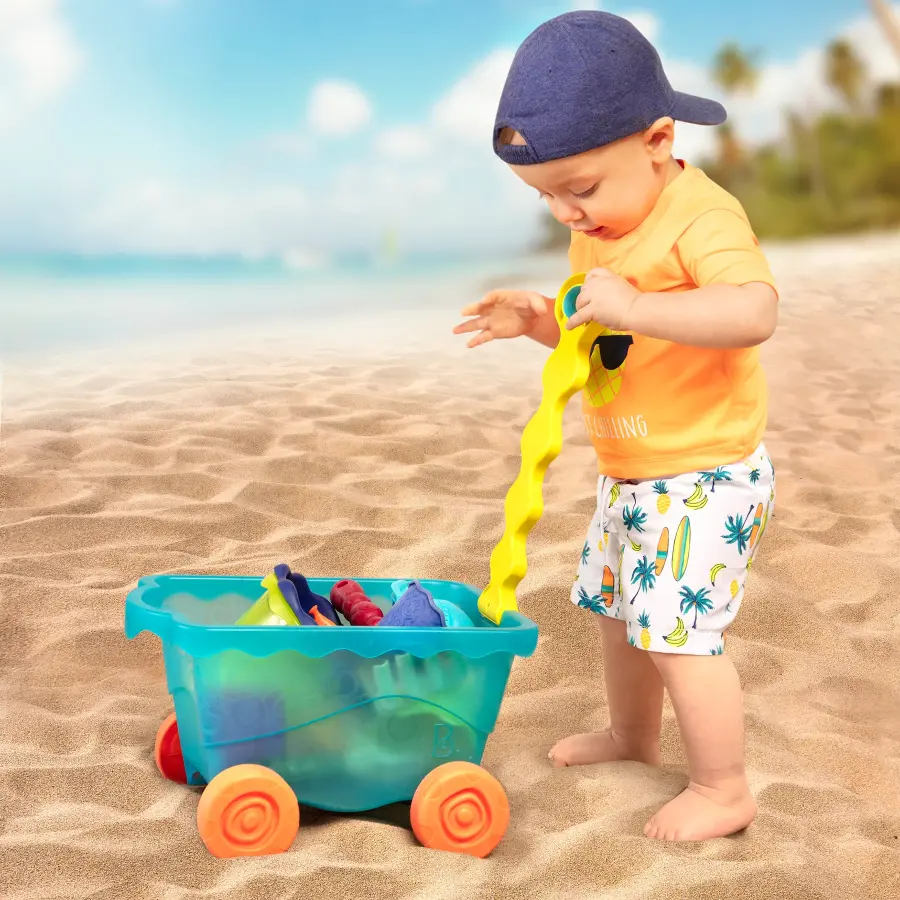 The Turquoise Beach Wagon helps you organize your beach essentials, and its removable and washable fabric lining makes cleaning easy.