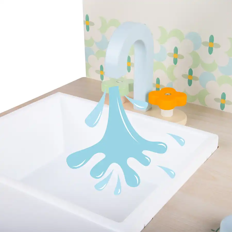 Equipped with real kitchen details, this set includes realistic accessories such as a stove, oven, sink, faucet, milk carton, and sardine can.