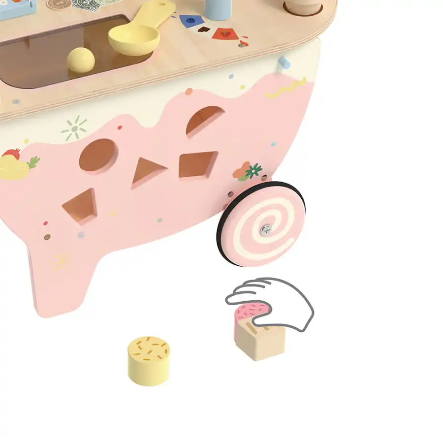The Classic World Wooden Ice Cream Cart both supports imagination and contributes to the development of social skills.