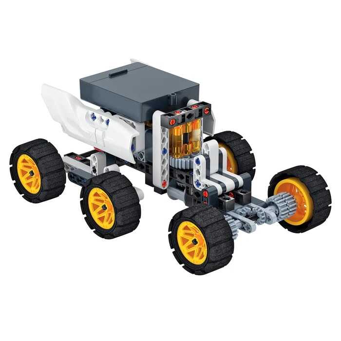 The futuristic NASA transport vehicle for the exciting exploration of Mars is here! Assemble the parts and rebuild the mechanisms in an immersive play experience, then launch the vehicle and embark on rich space adventures! Each challenge will encourage children to think, find possible solutions, and explore assembly possibilities while having fun.