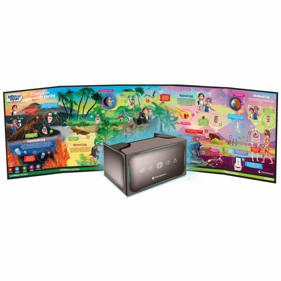 A journey that combines the physical and digital worlds! Welcome to a fascinating journey in which you will discover when life first appeared on Earth, how it developed throughout geological ages, and travel back in time! Introducing a rich and equipped kit to relive evolution on Earth from the Archaeozoic Era to the emergence of Homo Sapiens… Science and Play: The History of Life on Earth offers more than 50 experiences with virtual reality, augmented reality, mixed reality, video tutorials and virtual tours.