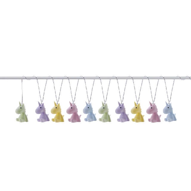 5 farklı pastel tonda Unicorn, 2 metre uzunluğunda LED REACh RoHS uyumlu led lamba, 3 adet AAA pil ile çalışır. (Piller dahil değildir)