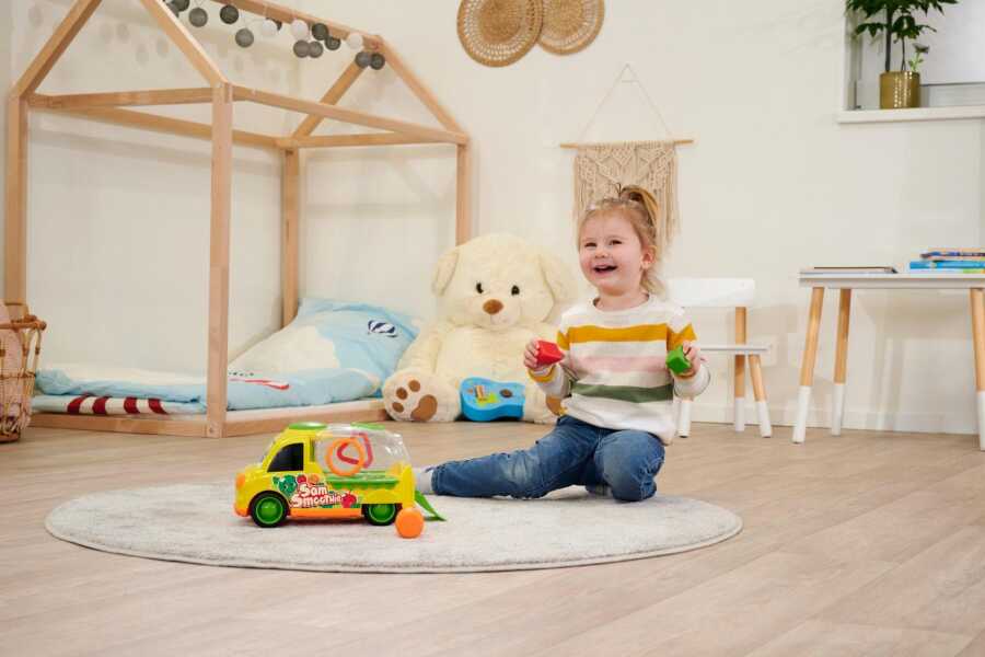 ABC - Sam Smoothie toy car (30cm) • 2-in-1 play car - free-wheeling car with integrated attachable toy: Sam Smoothie, the small sorting vehicle, has an important task: collect the right fruits to mix delicious smoothies! • The 4-wheeled smoothie machine first puts the fruit into the appropriate openings, then mixes them thoroughly and finally rolls out of the tailgate.