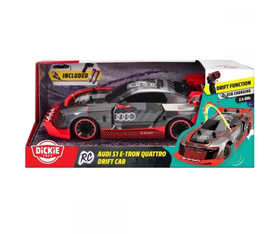 Now from Dickie comes the RC Audi S1 ​​E-Tron Quattro Drift Car – the RC car with 2-channel RC (2.