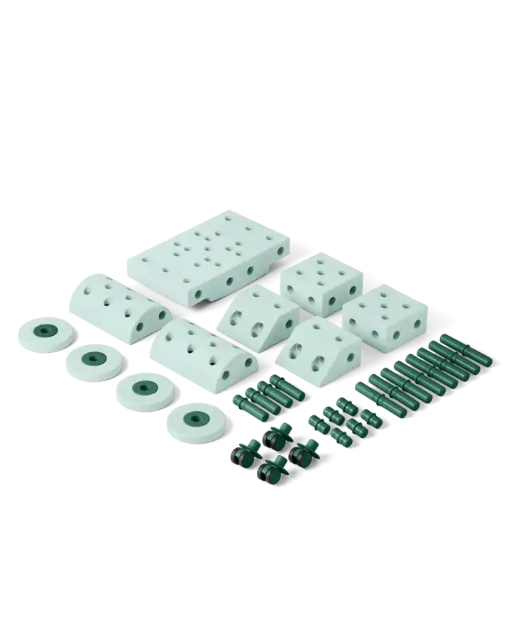 Let your biggest designs come to life. With MODU's flagship Dreamer Set, you can build over 25 life-sized toys and creations. Plus, every structure you build is perfect for riding, swinging, rolling, bouncing, climbing, and balancing.