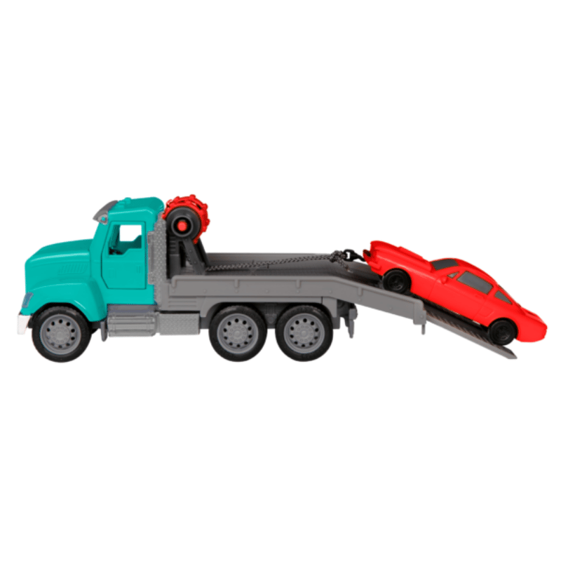 This toy truck is remote controlled so you can move it forward, backward and from side to side - so cool! There's a hook, rope and rear loading platform so you can rescue all the cars from the side of the road.