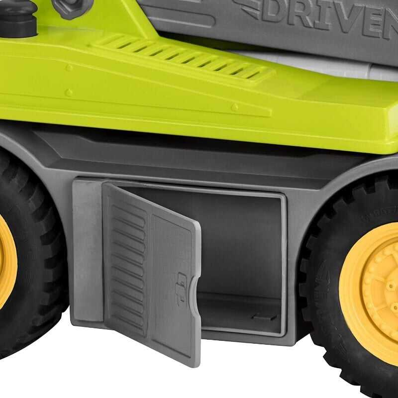 The Driven Truck Loader for Kids features realistic lights and sounds, a trailer, and opening doors and hood.