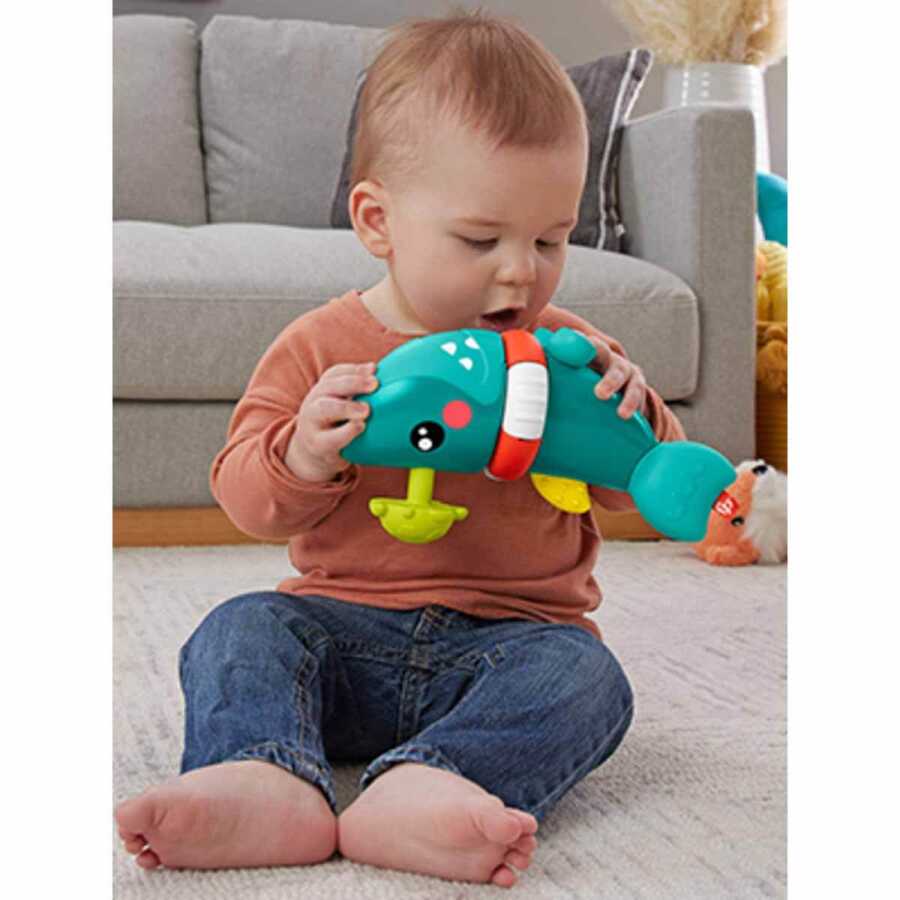 The Fun Shark from Fisher-Price inspires little ones to embark on open-sea adventures with interactive play! This friendly shark features a variety of exciting activities for your baby to explore, including a rattle tail, spinning lifebuoy, fun turtle, and fish-themed rattle beads.