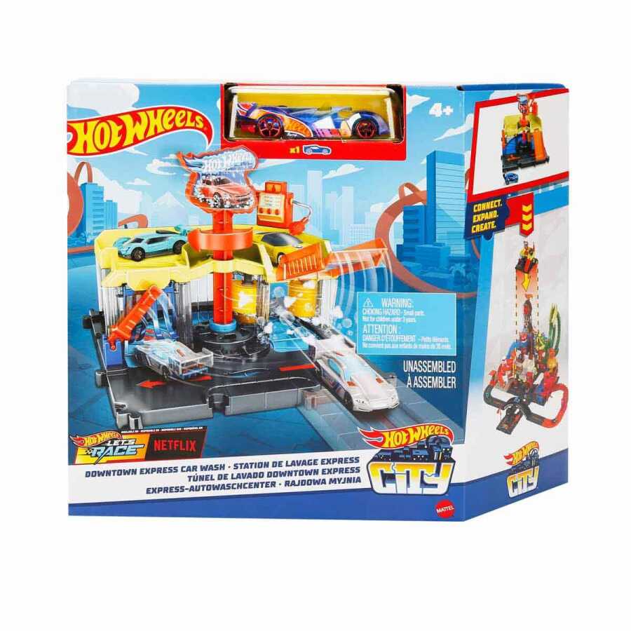 The box includes a Hot Wheels City Life set and a Hot Wheels vehicle.