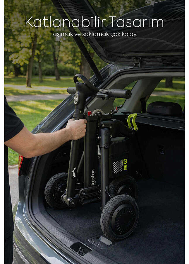 Kullanışlı Donanımlar: Ayarlanabilir oturma yüksekliği, ileri/geri sürüş modu, LED ekran, Type-C şarj girişi