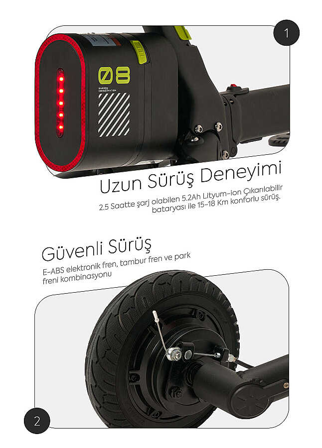 Uzun Menzil: 5,2Ah çıkarılabilir lityum batarya ile 15–18 km sürüş