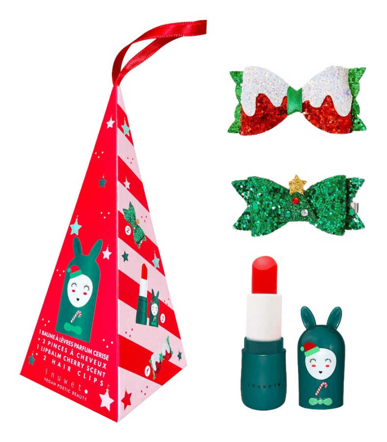 Inuwet Christmas Set Cherry Scented Lip Balm And 2 Hair Clips Vincn02
