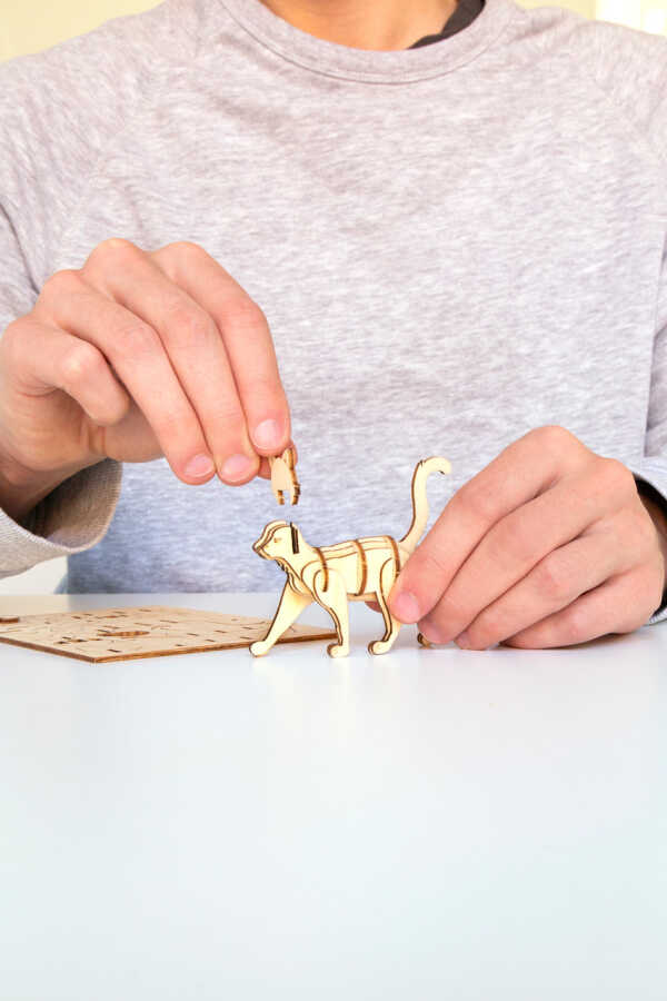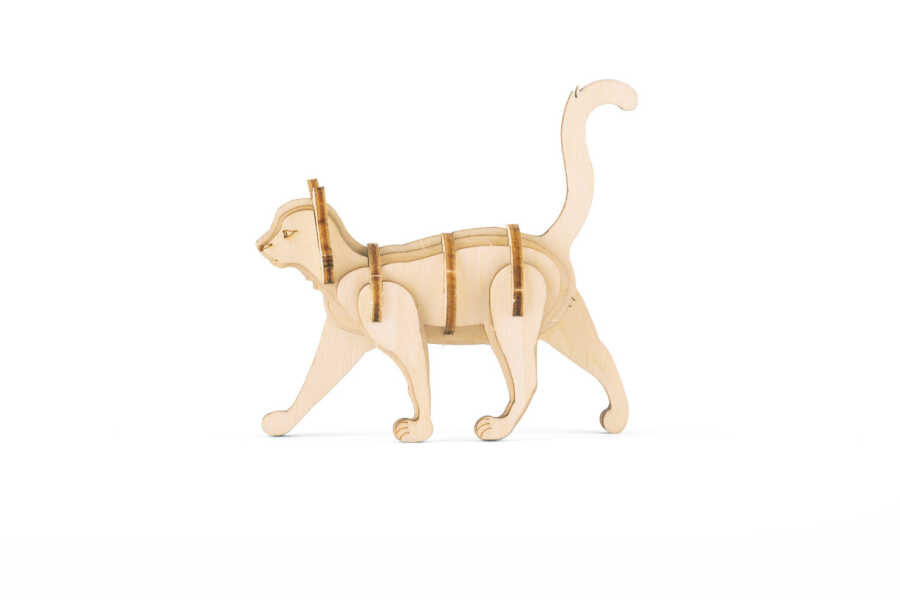 And the finished masterpiece will create a cat! Delivered in a flat pack (linden wood) measuring 13 cm wide and 16.