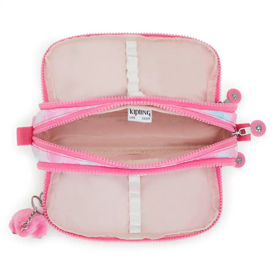 * Round Kipling logo * Fluffy monkey * 32 pencil holders * 3 main compartments (zipped) * Waterproof