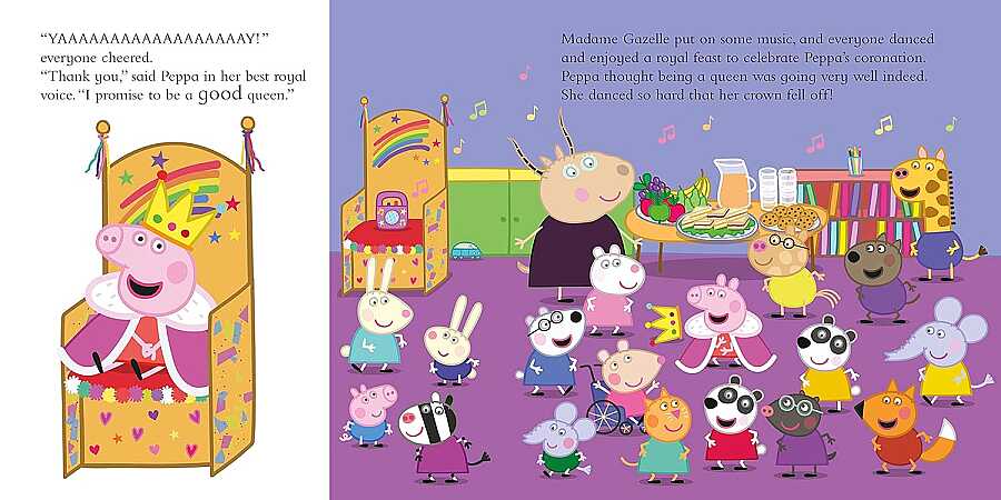 Peppa is learning all about coronations! Everyone in the playgroup will take turns being crowned king or queen, so what will Peppa do when she becomes queen?