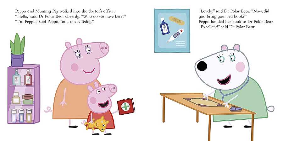 Peppa is visiting Dr. Polar Bear for a health check and vaccinations. Vaccines protect both us and those around us.