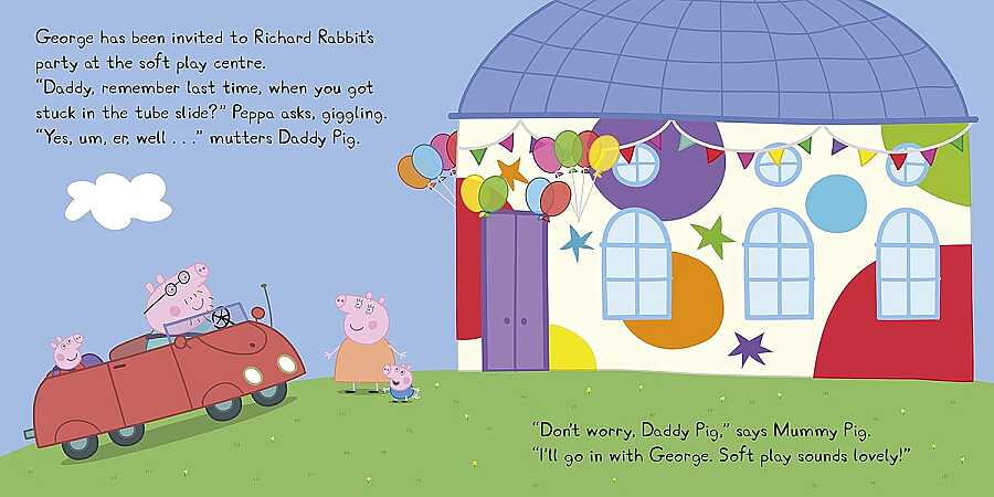 It's Richard Rabbit's birthday and the party is at the playground! Peppa and George are so excited because they love the soft play surface.