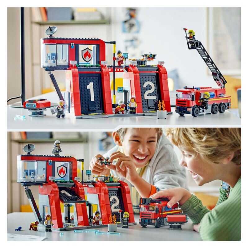 Kids can build the firefighting truck and rescue boat and simulate rescue operations with the firefighter figures.