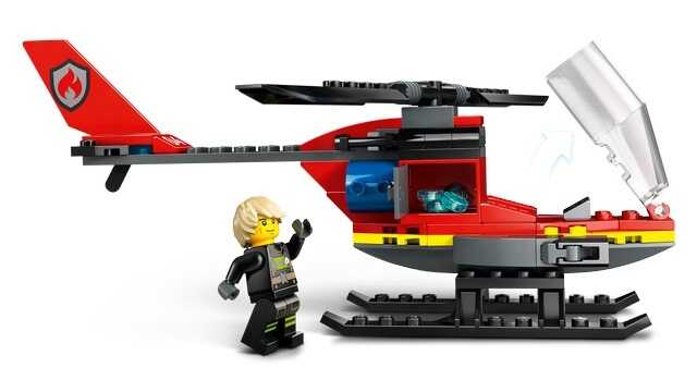 The Firefire Rescue Helicopter is part of the LEGO City Firefighting collection and is compatible with other City sets.