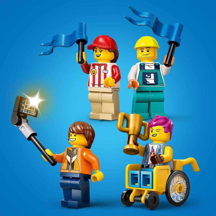• LEGO minifigure accessories… This soapbox race car set includes role-play accessories, such as a wheelchair, champion's trophy, selfie stick and a tool rack full of mechanic tools.