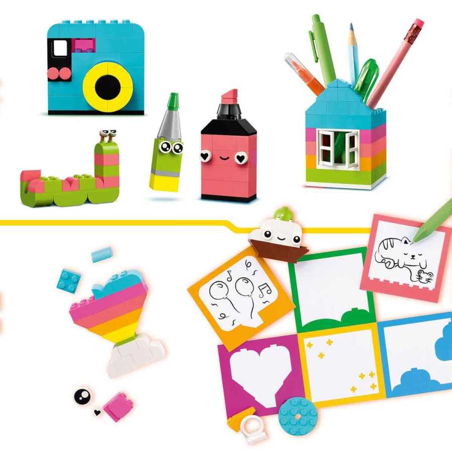 • Colorful bricks; The Creative Happy Box for kids is a LEGO building box filled with bright colors, buildable toys and fun possibilities for boys and girls aged 5 and up.